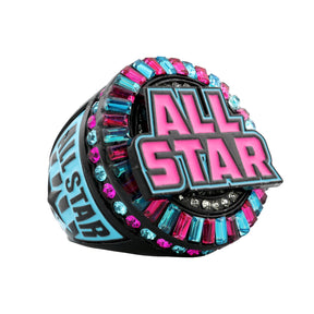 Shine like a true MVP with our All Star Ring! This striking piece features a bold "ALL STAR" emblem surrounded by dazzling stones, symbolizing excellence and achievement. The star and crescent accents, adds a powerful touch of flair. Crafted for durability and style, this ring is the ultimate accessory for all-star players and fans who take pride in their game.