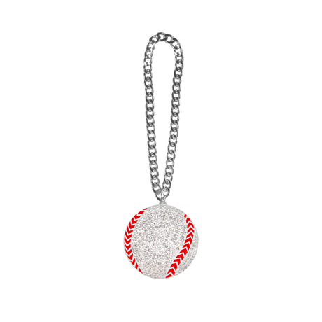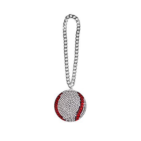 BASEBALL/SOFTBALL STONE CHAIN SILVER/CLEAR/RED