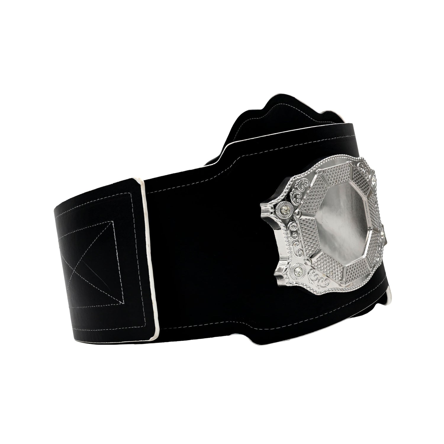 Featuring a bold center plate with a striking “FINALIST” banner, this belt shines with intricate detailing and sparkling accent stones that radiate prestige. The cage pattern backdrop adds depth and luxury, while the faux leather strap provides durability and a sleek professional look. Blank side plates are perfect for any stickers or logos, making it a show-stopping award for any finalist.