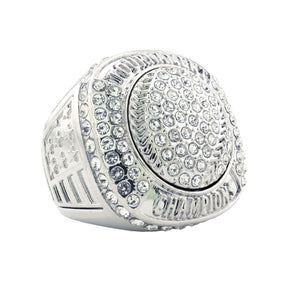 Featuring a dazzling silver-tone softball/baseball design, accented with clear rhinestones and set on a silver base, this ring delivers serious championship energy. With patriotic detailing and bold presence, it's the ultimate keepsake for players who left it all on the field.