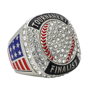 Featuring a dazzling softball/baseball design, accented with clear rhinestones and set on a silver base, this ring delivers serious championship energy. With patriotic detailing and bold presence, it's the ultimate keepsake for players who left it all on the field.
