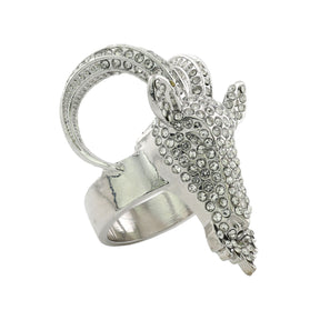This ring features a full sculpted goat head design, complete with curved horns and intricate detailing. The entire surface is covered in gemstones, giving it maximum sparkle and presence. From the horns to the snout, every angle of this ring shines, making it a true standout for champions who want to show they’re at the top of their game.