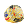 Featuring a dazzling softball/baseball design, accented with clear rhinestones and set on a gold base, this ring delivers serious championship energy. With patriotic detailing and bold presence, it's the ultimate keepsake for players who left it all on the field.