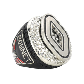 Celebrate victory with the Bownet Finalist Ring — a symbol of elite performance and triumph. Crafted with a bold silver and black design, this ring features a striking geometric centerpiece surrounded by sparkling clear stones. The iconic "Bownet" name and finalist text are etched on the sides, showcasing the pinnacle of success.