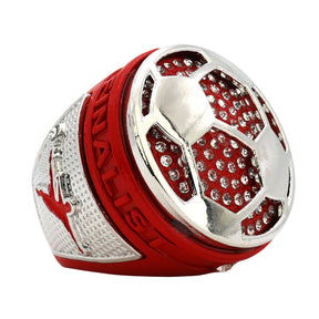 Get ready to dominate the field and celebrate the win with our large collection of high-quality soccer tournament rings. Side and top panels are detailed with a Soccer Ball emblem and kicker silhouette.