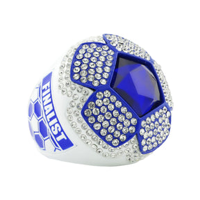 Get ready to dominate the field and celebrate the win with our large collection of high-quality soccer tournament rings. Side and top panels are detailed with a Soccer Ball emblem and kicker silhouette.