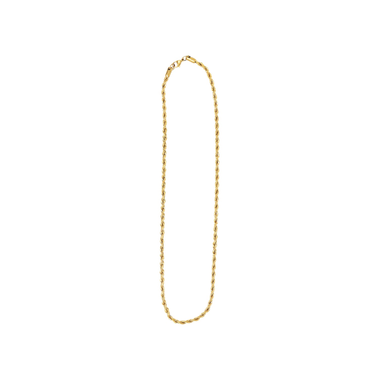 Crafted from premium stainless steel, this chain delivers a bold, twisted rope design that catches the light from every angle. Its sturdy construction ensures long-lasting shine and strength, whether you wear it solo or pair it with your favorite pendant.