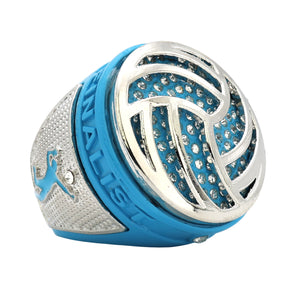 Get ready to dominate the court, claim your title and shine like a champion with these Volleyball Championship Rings. Side and top panels are detailed with a volleyball emblem and volleyball player logos.
