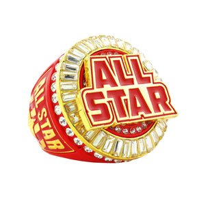 Shine like a true MVP with our All Star Ring! This striking piece features a bold "ALL STAR" emblem surrounded by dazzling stones, symbolizing excellence and achievement. The star and crescent accents, adds a powerful touch of flair. Crafted for durability and style, this ring is the ultimate accessory for all-star players and fans who take pride in their game.