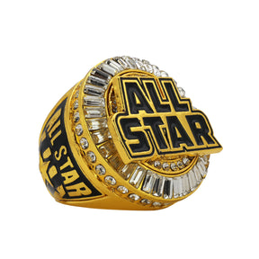 Shine like a true MVP with our All Star Ring! This striking piece features a bold "ALL STAR" emblem surrounded by dazzling stones, symbolizing excellence and achievement. The star and crescent accents, adds a powerful touch of flair. Crafted for durability and style, this ring is the ultimate accessory for all-star players and fans who take pride in their game.