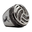 Get ready to dominate the court, claim your title and shine like a champion with these Volleyball Championship Rings. Side and top panels are detailed with a volleyball emblem and volleyball player logos.